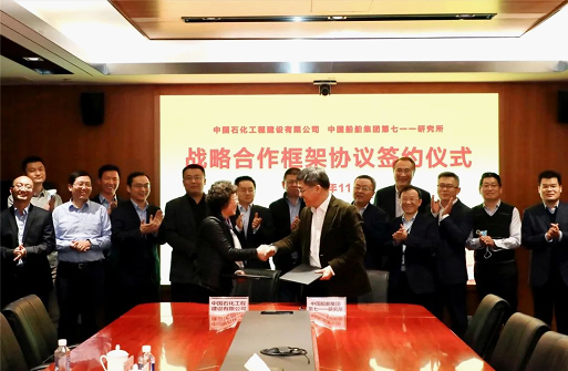 11月5日,中国船舶集团七一一所与中国石化工程建设有限公司(以下简称“SEI”)在北京签署战略合作框架协议,标志着双方多年良好的合作关系迈入新阶段。七一一所所长董建福和SEI执行董事、党委书记、中国工程院院士孙丽丽代表双方签约。