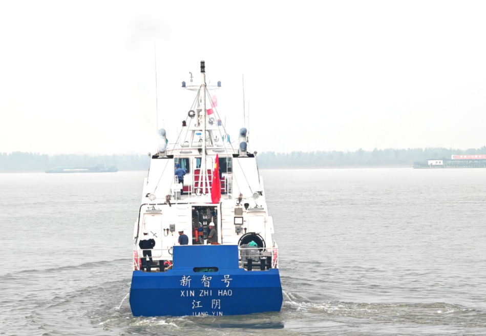 “新智”号试验船由芜湖造船厂建造,满载排水量500吨,双机双浆配置,为充分验证船用主机及配套设备可靠性,“新智”号共完成两轮交船测试,总航程已超900海里。在各级海况下,试验船主机额定转速、功率等指标均达到设计要求。
