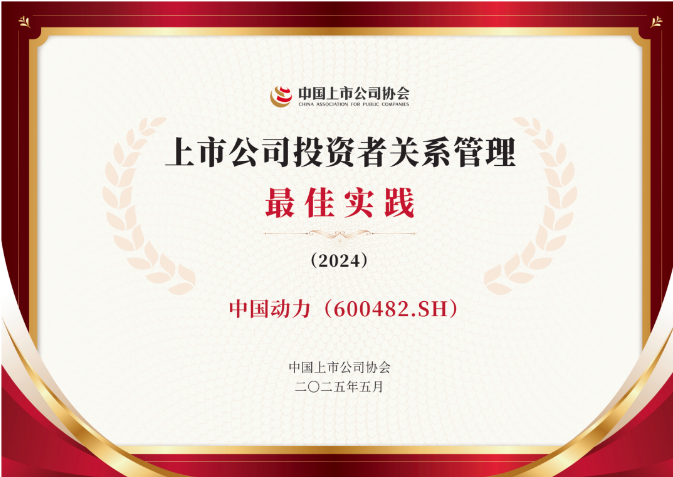 近日,中国动力成功入选中国上市公司协会“上市公司投资者关系管理最佳实践(2024)”,这是公司连续第二年荣获这一资本市场重要荣誉,充分彰显了监管机构、投资者及市场各界对公司长期规范运作与价值传递能力的高度肯定。