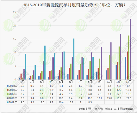 根据中汽协公布的产销数据显示:2019年8月,我国新能源汽车产销分别完成8.7万辆和8.5万辆,比上年同期分别下降12.1%和15.8%。1-8月,新能源汽车产销分别完成79.9万辆和79.3万辆,比上年同期分别增长31.6%和32.0%。在补贴退坡+车市寒冬双重因素作用下,新能源汽车继今年7月销量出现首次同比下滑后,8月份新能源汽车产销同比继续下降,且降幅扩大。新能源汽车市场表现的疲态,对钴市行情有较大利空。2019年全年的新能源汽车销量仍有较大增长,新能源汽车对钴市需求仍有一定的支撑作用。