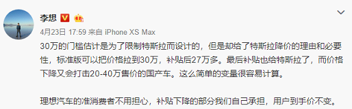 图片来源:李想微博截图