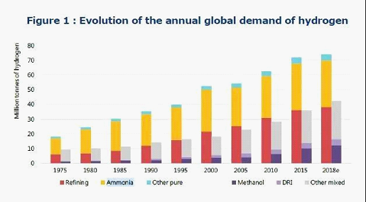 报告指出,目前,全球每年有约7000万吨氢气的需求,欧盟约占全球氢需求的9%。其中,占比最多的是燃料的精炼,其次是用于农业、矿业和工业用途的氨和甲醇的生产。同时,这些与“经济脱碳”无关的氢用途的消费量一直在不断增长。