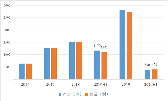 7月10日,中国汽车工业协会发布了《2020年6月汽车工业经济运行情况》。6月,新能源汽车产销分别完成10.2万辆和10.4万辆,同比分别下降25.0%和33.1%。其中,燃料电池汽车产销均完成81辆,同比分别下降83.9%和83.3%。1-6月,新能源汽车产销分别完成39.7万辆和39.3万辆,同比分别下降36.5%和37.4%。其中,燃料电池汽车产销分别完成390辆和403辆,同比分别下降66.5%和63.4%。燃料电池汽车产销量下降幅度远高于其他新能源汽车。