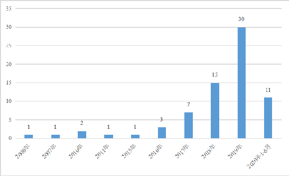 图2 中国2006年-2020年1-6月建成加氢站情况