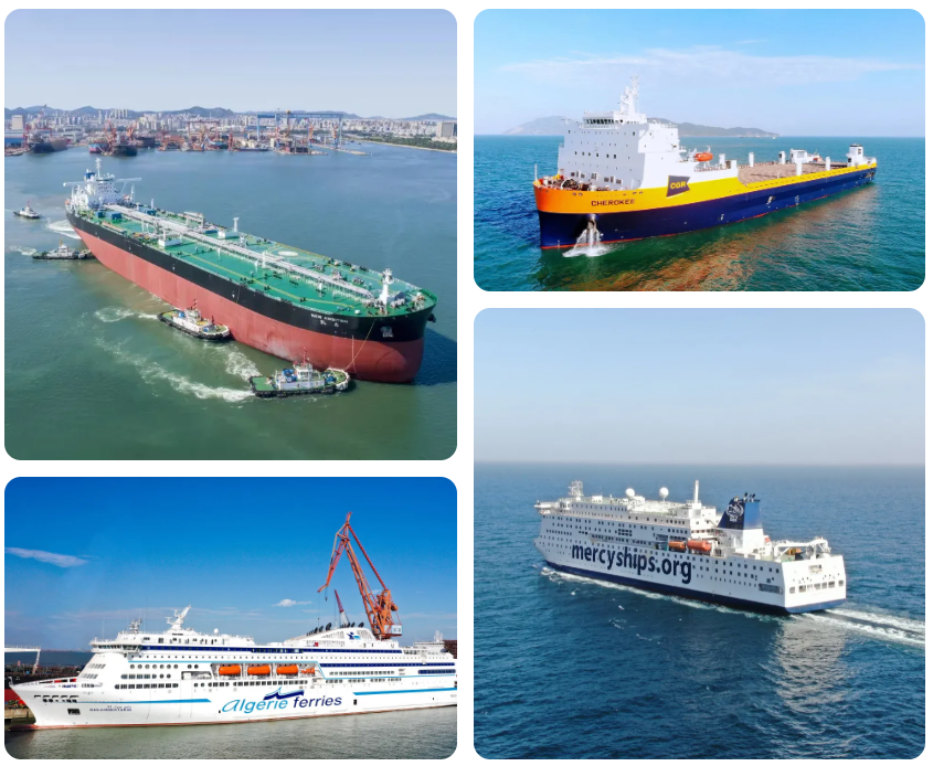 而大船集团交付1艘世界最大最先进的民用医院船、黄埔文冲交付2艘全球最大火车运输船、中船澄西交付2艘910RFEU冷藏集装箱船,彰显了中国船舶集团在高端特种船舶等领域蓬勃发展的良好态势。