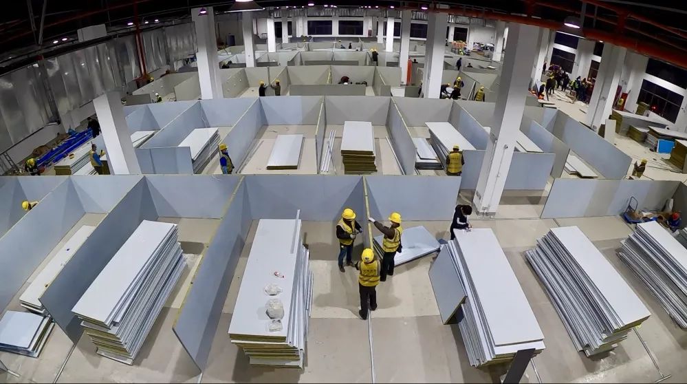 长兴岛疫情突发,医疗资源严重匮乏,上海市和崇明区政府紧急启动应急措施,尽快建起集中隔离治疗场所成了当务之急。长兴岛防疫抗疫工程建设项目分三期,包括3个集中收治点和1个隔离观察点,总施工面积超10万平方米,需在10天内建成。