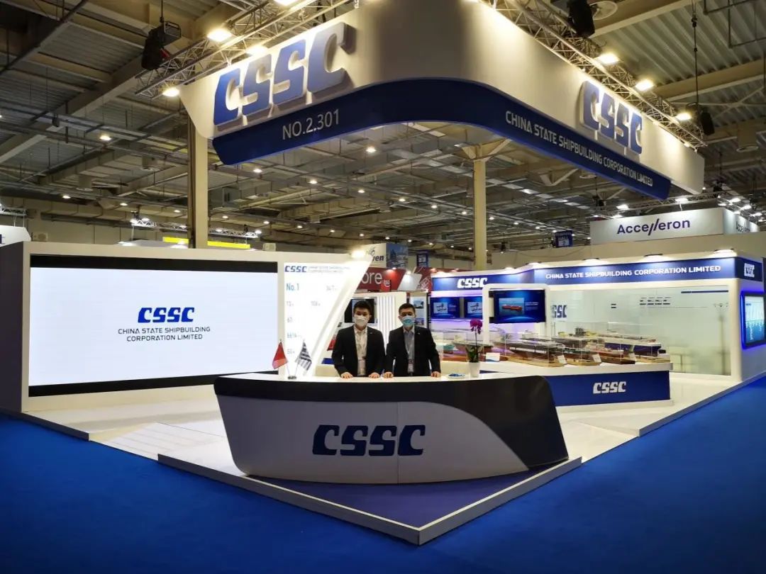 此次展会上,中国船舶集团展台面积150平方米,参展展品涵盖船舶、海洋工程、动力装备等产品模型,包括13.5万总吨大型邮轮、17.4万立方米大型LNG运输船、1.86万立方米LNG加注船、2.3万箱超大型双燃料集装箱船、1.5万箱集装箱船、9.8万立方米VLEC、2500客位/3800米车道客滚船、3000米深水半潜式钻井平台、30万吨FPSO、23万立方米LNG FPSO、17.4万立方米LNG-FSRU等一系列具有国际竞争力的高端船海产品,系统地推介了中国船舶集团船海产业总体实力、船海产品整体体系以及研发、设计、建造能力和未来发展前景;与此同时,展会上全方位展示了中国船舶集团未来绿色低碳船型研发情况,突出体现了中国船舶集团执行国际海事规则要求,践行全球环保理念的主动作为与实际行动。