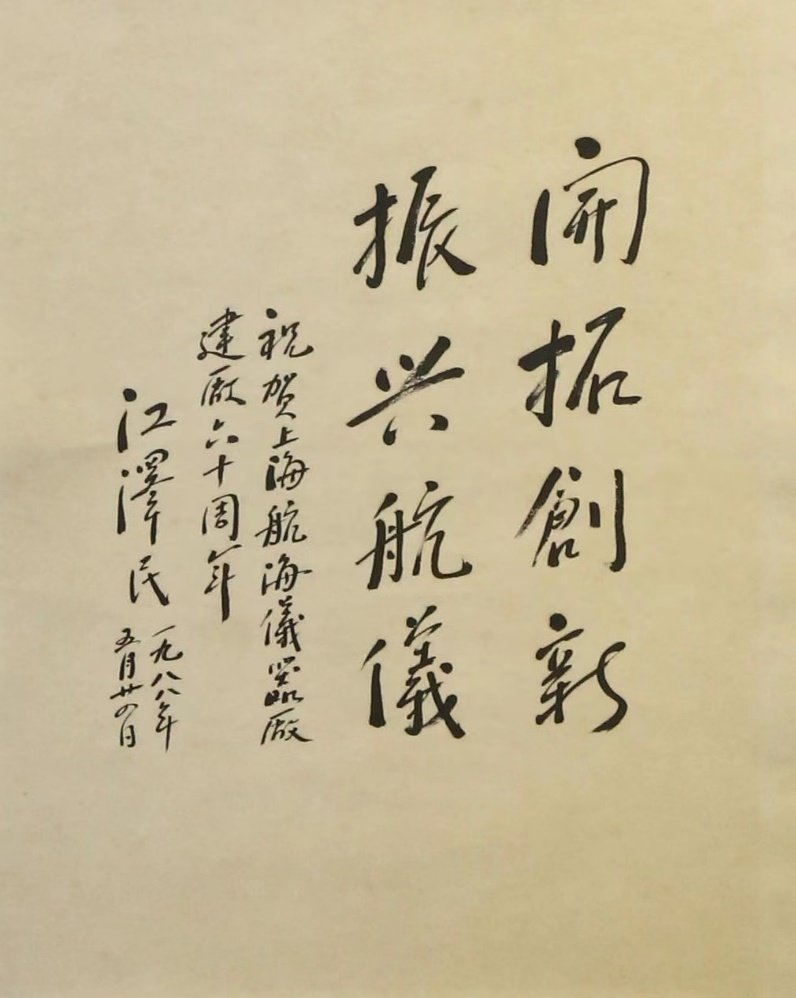 江泽民同志曾给系统工程研究院、中船电科旗下中船航海题词。1988年5月,为庆祝上海航海仪器厂建厂60周年,江泽民同志写下“开拓创新,振兴航仪”以示祝贺。