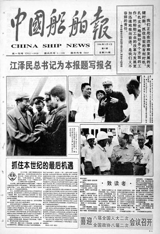 1994年3月6日,《中国船舶报》首次启用江泽民同志亲笔题写的报头。