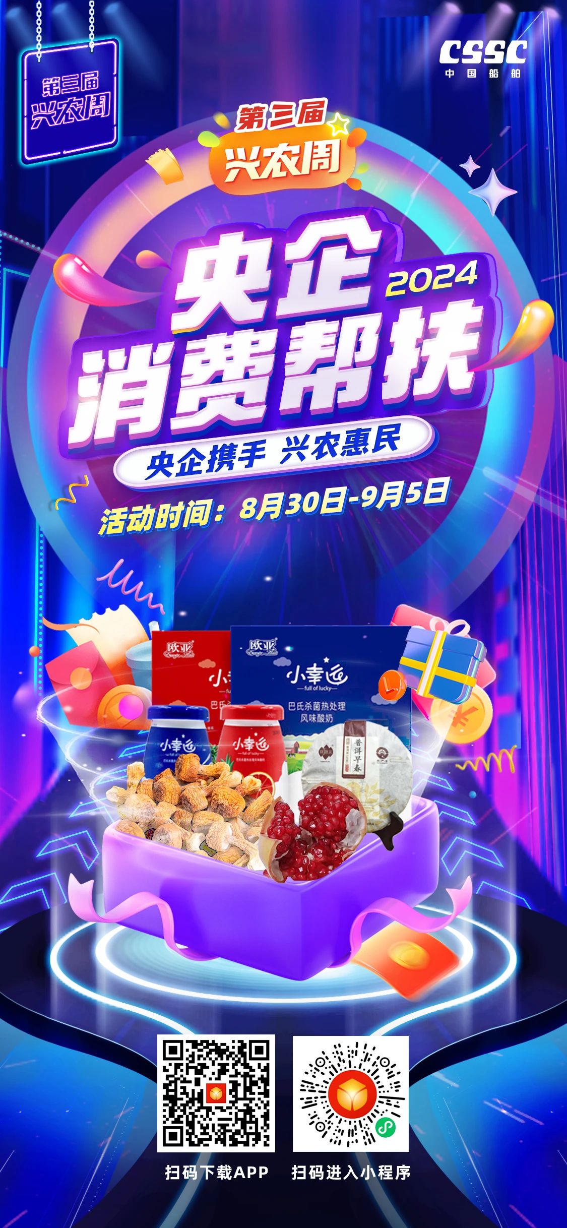 百家央企聚合力,消费帮扶促振兴。8月30日~9月5日,第三届“央企消费帮扶兴农周”热情来袭、盛大启动!