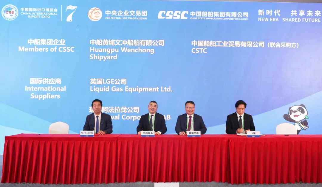 中国船舶集团有限公司党组成员、副总经理盛纪纲应邀参加第七届进博会暨虹桥国际经济论坛开幕式,出席11月6日下午举行的第七届进博会国资委中央企业交易团中国船舶交易分团采购集中签约仪式并致辞。