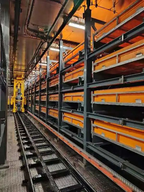 # 岩心库内部配置了船载岩心库自动仓储系统,实现了岩心托盘的自动存取;