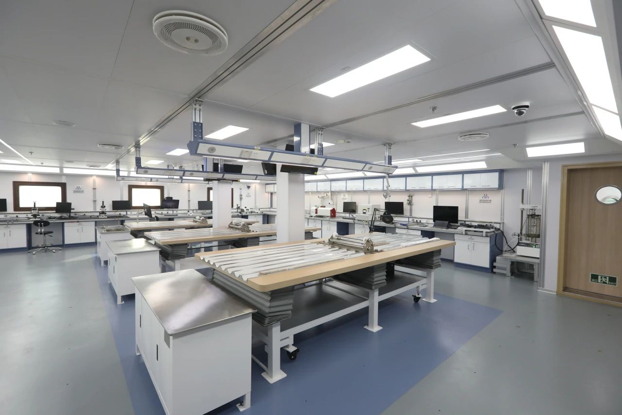 “梦想”号大洋钻探船建有海洋领域全学科船载实验室,涵盖九大实验功能,并配置船载岩心自动传输存储系统。