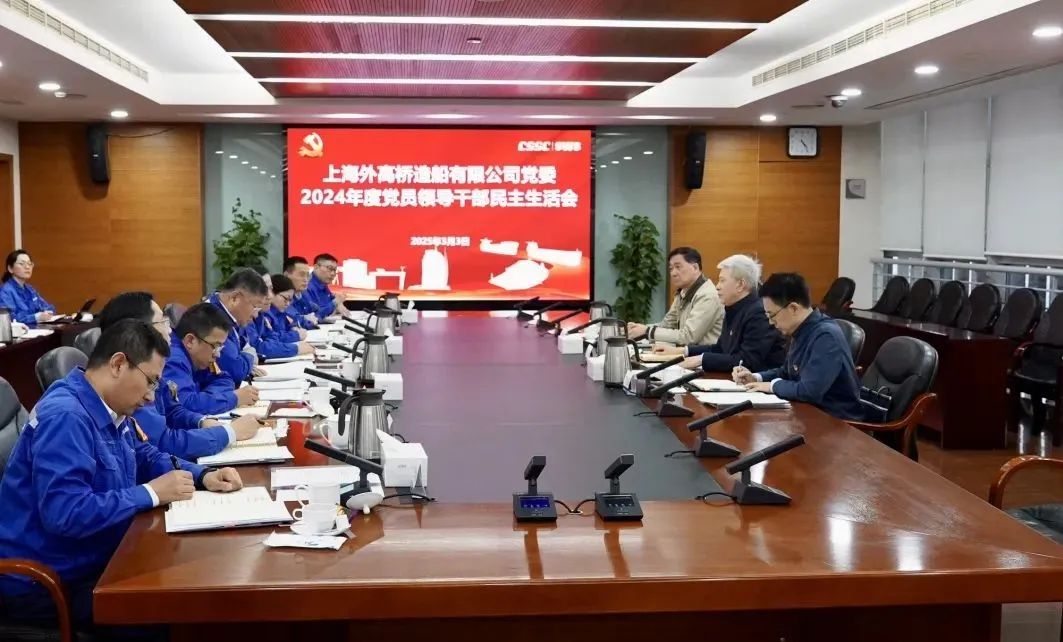 Beat365唯一官方网站旗下外高桥造船党委召开2024年度党员领导干部民主生活会。集团公司党组书记、董事长徐鹏到会指导并点评。