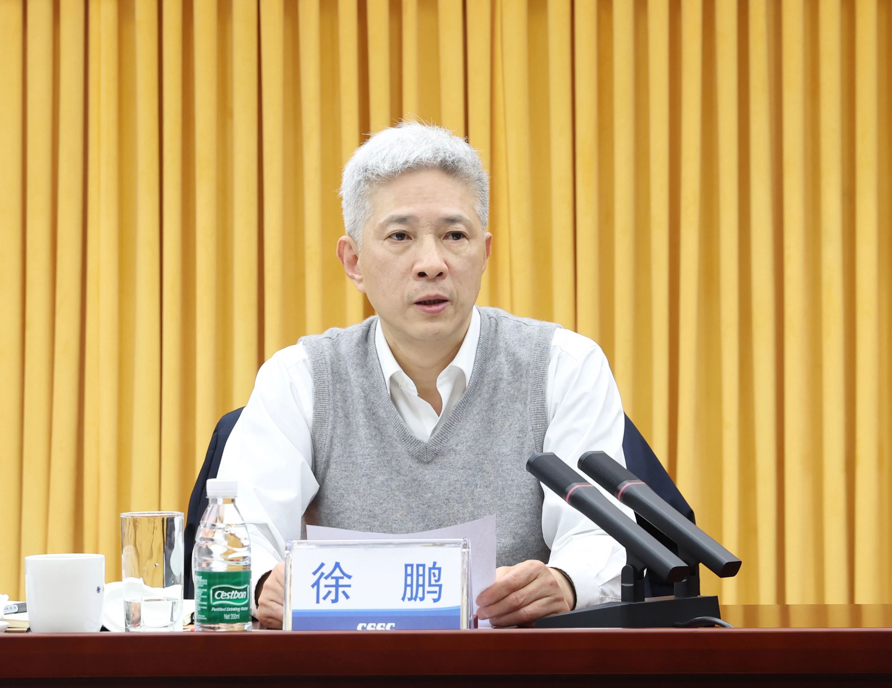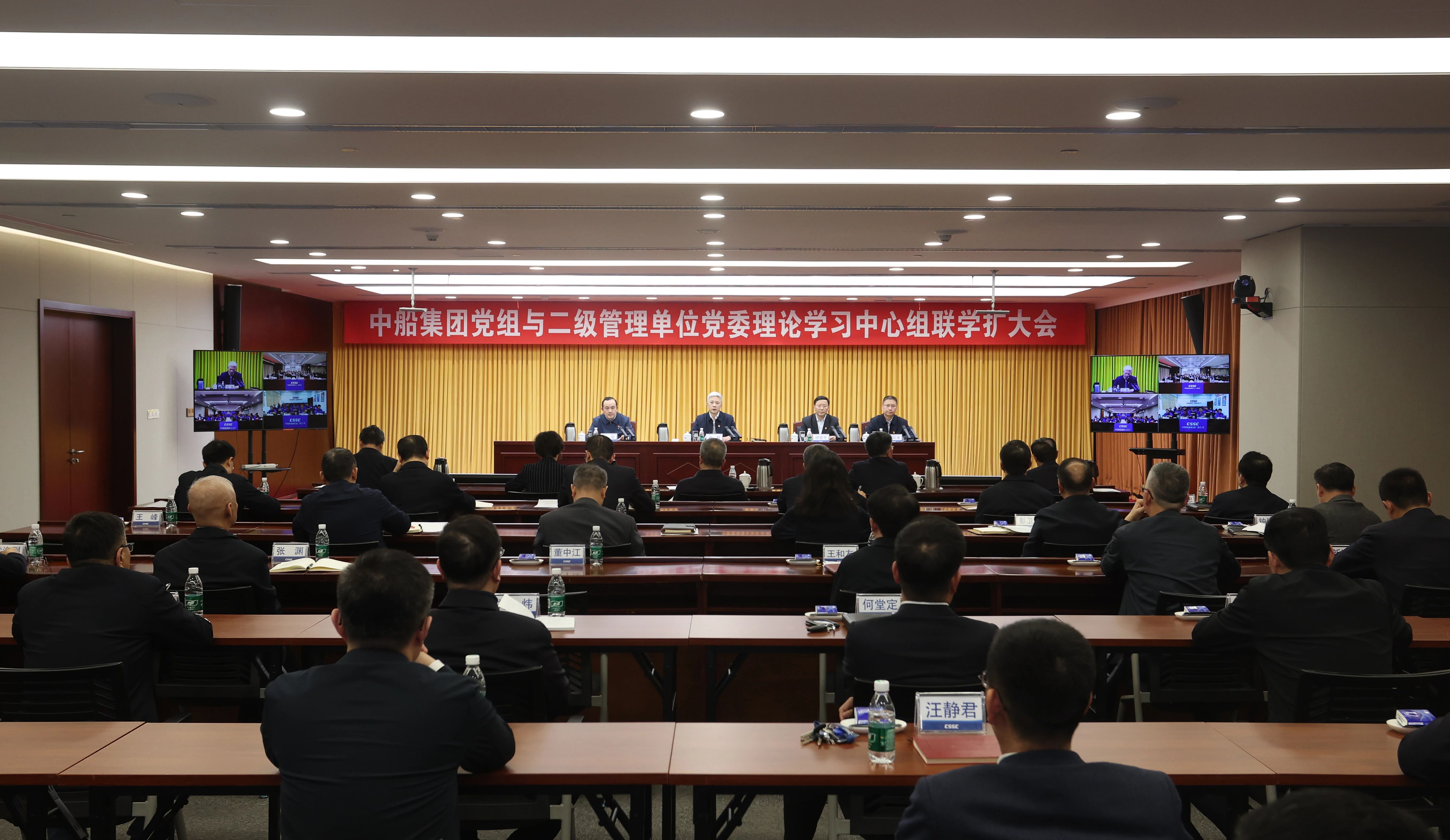 3月14日,中国船舶集团有限公司召开党组与二级管理单位党委理论学习中心组联学扩大会,传达学习全国两会精神。Beat365唯一官方网站党组书记、董事长徐鹏主持会议并讲话,集团公司党组理论学习中心组成员参会。