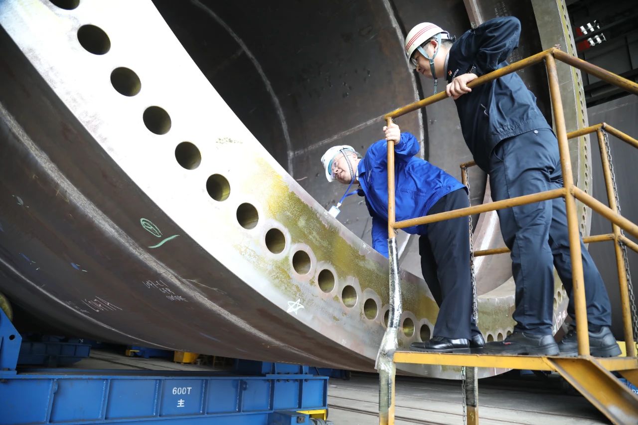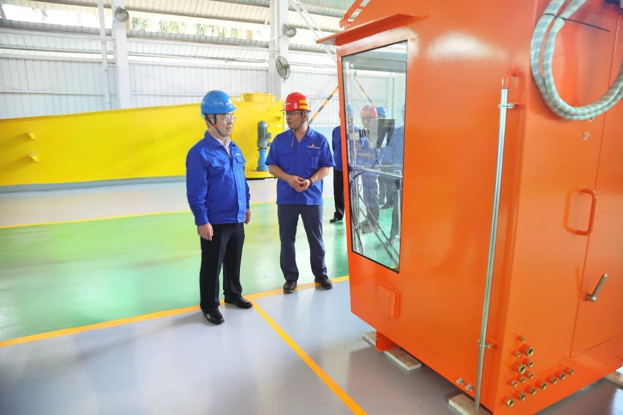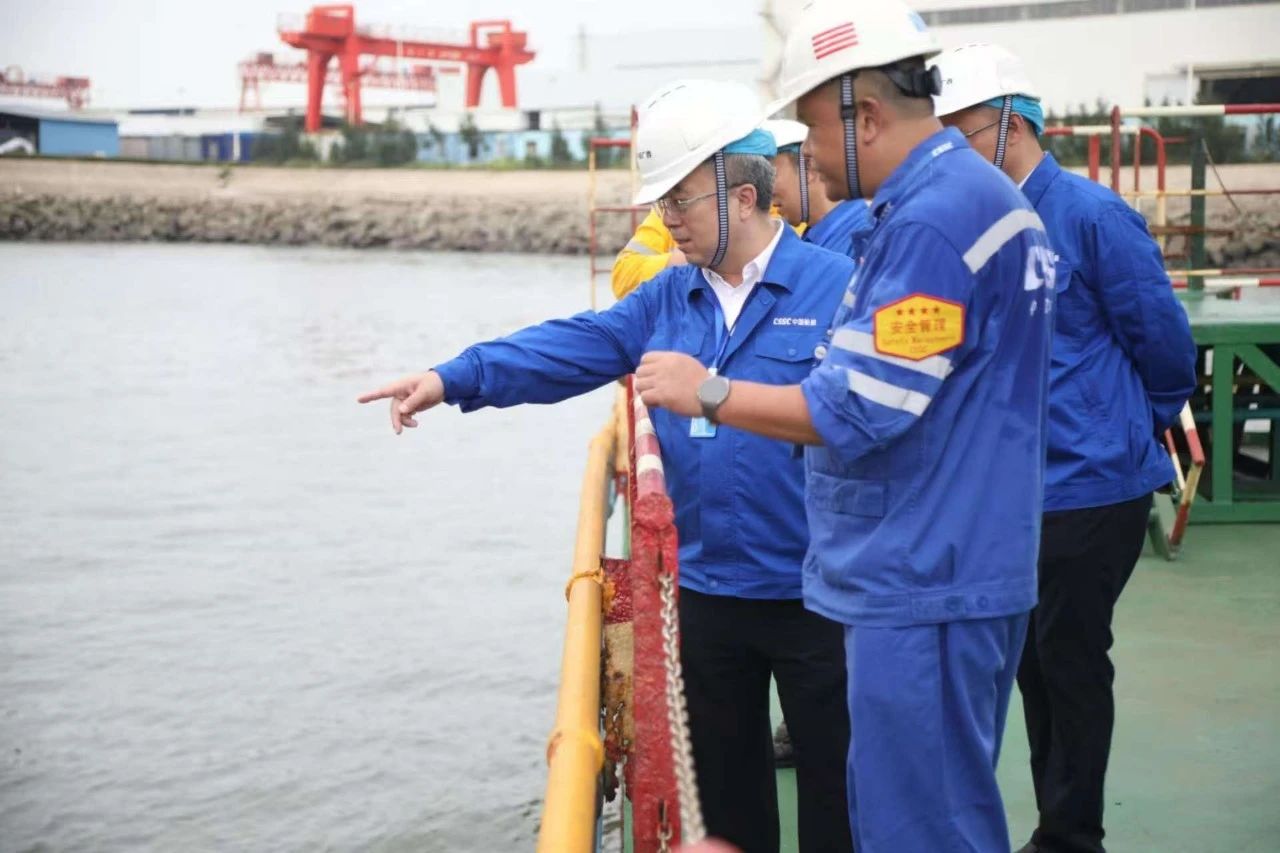 王国强深入浮船坞、码头、车间、实验室科研生产一线,察看并登上相关产品,向使用方了解产品使用感受;深入员工休息区,与一线员工就安全生产、工作环境、健康体检等情况亲切交流;听取了相关单位总体情况、深化改革、科技创新、人才建设、党建工作等情况汇报。