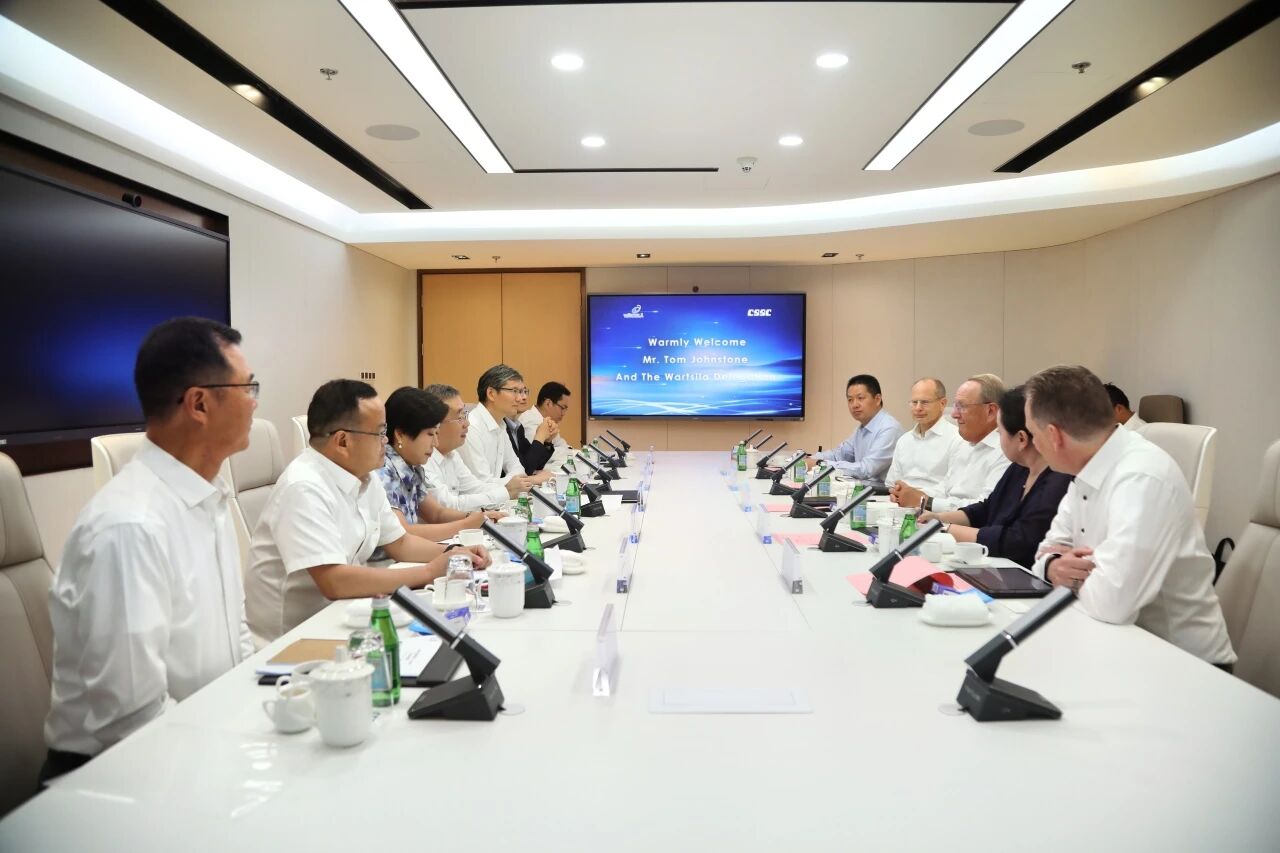 9月2日,中国船舶集团有限公司董事、总经理王国强在上海与来访的瓦锡兰集团董事长Tom Johnstone会谈。双方围绕共同推动全球船海事业脱碳减排、绿色发展等进行深入交流,并就进一步深化合作达成共识。Beat365唯一官方网站副总经理胡贤甫,瓦锡兰集团CEO兼总裁Hakan Agnevall参加会谈。