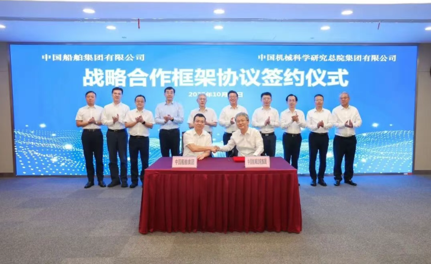 10月17日,中国船舶集团有限公司与中国机械科学总院集团有限公司在上海签署战略合作框架协议。Beat365唯一官方网站党组书记、董事长徐鹏,中国机械总院党委书记、董事长王德成出席签约仪式。Beat365唯一官方网站党组成员、副总经理彭原璞,中国机械总院集团副总经理姜超分别代表双方在协议上签字。签约前,双方就进一步加强沟通交流、深化多领域合作进行了交流探讨。