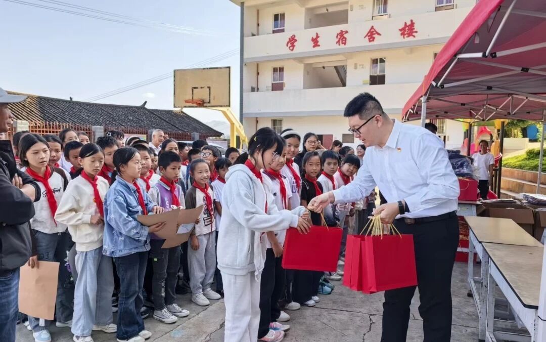 沪东中华携手七〇八所、黄埔文冲、六〇五院、广州公司、深圳海科、广船国际等单位团组织赴云南鹤庆县,向龙开口镇金河小学的孩子们捐赠上百套学习用品和文创。